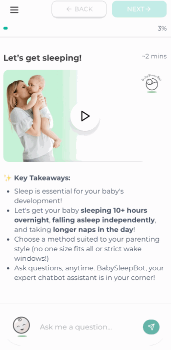 BabySleepBot™ is our expert AI chatbot trained extensively by Jennifer!